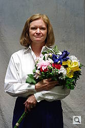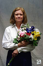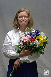 Indoors, under normal incandescent lighting, color balance was very warm with the Auto white balance setting, with a strong orange cast. Results with the Incandescent setting were a bit on the cool side, with a slightly bluish cast. The 2,900 Kelvin setting, which should match our lights, resulted in a warm cast as well. The Manual setting was the most neutral and accurate. The Pentax K20D required an average amount of positive exposure compensation for our new indoor scene, at +0.3 EV. Overall color with the Manual white balance setting looks quite good, though the blue flowers appear slightly purple. (Many digital cameras reproduce these flowers with a dark, purplish tint, so the Pentax K20D actually performs a little better than average here.) Our test lighting for this shot is a mixture of 60 and 100 watt household incandescent bulbs, a pretty yellow light source, but a very common one in typical home settings here in the U.S.
