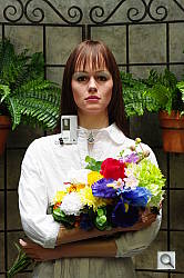 At its lowest contrast setting, the K20D did a pretty good job of preserving highlight detail, with much fewer blown highlights, while maintaining fairly natural-looking (if a bit pink) skin tones, and holding nice detail in the shadows. The K20D captures good color outdoors, though again, just slightly on the warm side. Overall, very good results here, though colors are a little flat (see below).