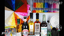 In-camera editing functionality includes the ability to rotate images in 90-degree increments, crop and resize, and to apply digital filters.These include Toy Camera, Retro, High Contrast, Sketch Filter, Water Color, Pastel, Posterization, Miniature, Base Parameter Adjust, Monochrome, Color, Extract Color, Soft, Starburst, Fish Eye, Slim, HDR, and Custom Filter. Most filter types provide a fair degree of customization over their effect, and the majority are quite similar to their counterparts on the K-7. Exceptions are the new Sketch Filter and Posterization modes, the Water Color filter (which now has an 'Off' position for saturation), the Extract Color filter (which can now extract two colors, rather than one), the Starburst filter (which adds four new effect shapes), and the Miniaturization filter (which now offers seven plane positions, three widths, four angles, and three blur strengths, versus the K-7's three fixed presets.)