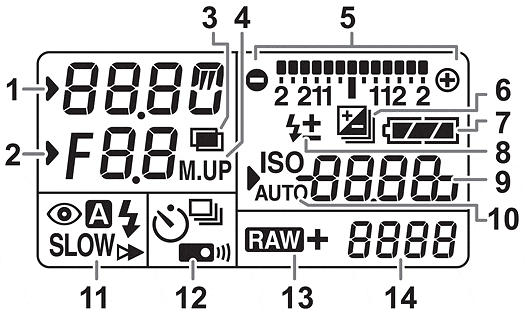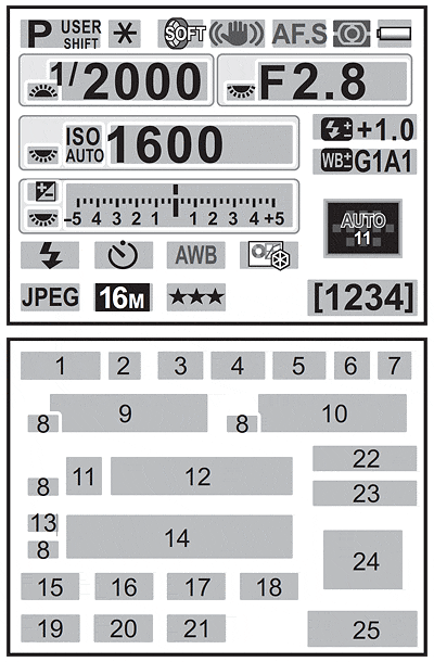 See the illustration (courtesy of Pentax) and table below for detailed information: