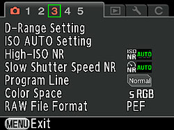 Pentax K-5 Menu Details