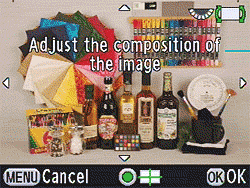 The animation at right shows how much you can shift the image, relative to the overall frame area. It's a surprisingly large amount, more than we expected. (We haven't tried it, but this should also work like a shift-lens does for shooting tall subjects without tilting the camera -- and producing converging verticals -- although the range of motion relative to what a dedicated shift lens can achieve is relatively small.)