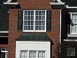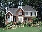 | Far-Field Test Excellent detail and resolution, better than average sharpness in the corners. High contrast limits the dynamic range, however. This image is shot at infinity to test far-field lens performance. NOTE that this image cannot be directly compared to the other "house" shot, which is a poster, shot in the studio. The rendering of detail in the poster will be very different than in this shot, and color values (and even the presence or absence of leaves on the trees!) will vary in this subject as the seasons progress. In general though, you can evaluate detail in the bricks, shingles and window detail, and in the tree branches against the sky. Compression artifacts are most likely to show in the trim along the edge of the roof, in the bricks, or in the relatively "flat" areas in the windows. This is my ultimate "resolution shot,"