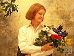 saturation is low at the default setting). The extreme tonal range of this image makes it a tough shot for many digicams, which is precisely why I set it up this way, and why I shoot it with no fill flash or reflector to open the shadows. The object is to hold both highlight and shadow detail without producing a "flat" picture with muddy colors, and the Konica Minolta DiMAGE A200 did an excellent job with the exposure, but left the color slightly flat overall. The shot at right was taken with a +0.7 EV exposure compensation adjustment, which is about average or just below average for this shot. I also shot with the A200's contrast adjustment set to its lowest position. Thanks to the broad range of adjustment offered by its contrast control, the A200 did an excellent job of holding onto highlight detail here, and shadow detail is excellent as well. (The tonal response here is among the very best I've seen for this shot, including many professional SLR models.)H I chose the A200's Auto white balance setting as the most accurate color balance, as the Daylight setting resulted in a slight yellow cast and the Manual setting had a red tint. Overall color is good, though low in saturation, most likely because I had the contrast control set so low. The camera's Saturation adjustment (see below) however, does a good job of increasing or decreasing color saturation in very small steps, so that you get pleasing results with only a slight tweak. Marti's skin tones look about right, though the blue flowers in the bouquet a bit more purplish than they are in real life. (Many digicams have trouble with this blue, and the A200 falls victim somewhat here as well.) The strong reds, greens, and yellows also look very hue-accurate, though dark. Resolution is very high, and detail is excellent, with little or no loss of subtle detail to the camera's anti-noise processing. Shadow detail is good, and image noise is low. Overall, an excellent job with a very difficult subject. To view the entire exposure series from zero to +1.3 EV, see files A2OUTAP0.HTM