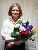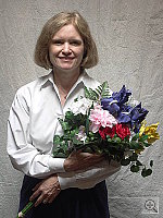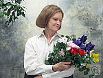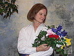 Slight underexposure with the flash in the normal setting, but a small EV boost produces good results. Good color with the normal flash mode, a strong warm cast with the Slow-Sync setting. Though just slightly dark, the A200's built-in flash illuminated the subject well with a +0.3 EV exposure compensation adjustment, less than this shot normally requires. (The default exposure was fairly dark, and I felt that the shot taken with a +0.7 EV adjustment was too bright on Marti's face and in the highlights.) The color balance looks pretty good, as does Marti's skin tone. The blue flowers, however, are rather dark and purplish. The camera's Slow-Sync flash setting produced a more even exposure, with more balanced lighting from the longer shutter speed, but at the cost of a strong orange cast from the background incandescent lighting. I chose an exposure compensation adjustment of +1.0 EV for the slow-sync shot. To view the entire exposure series from zero to +1.3 EV in the normal flash mode, see files A2INFP0.HTM through A2INFP4.HTM on the thumbnail index page. To view the same exposure series in the Slow-Sync flash mode, see files