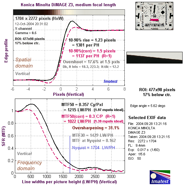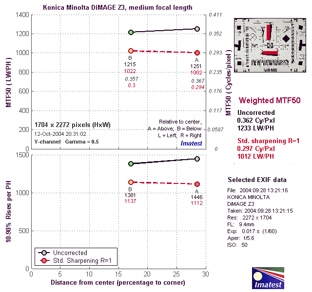 Here's some of the results produced by Imatest for the Konica Minolta Z3: