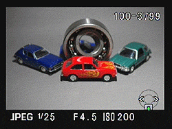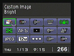 Rolling the e-dial to the right, meanwhile, steps through folder, index, and full-image views, before enabling the playback zoom feature, which magnifies images as much as 16x. The blinking Bright / Dark Area warning does work while zoomed in, but the K-r doesn't go quite as far in some prosumer cameras that also allow use of the histogram function during playback zoom. Still, even the highlight / shadow warning is very useful to have when zoomed. You can of course pan around the zoomed image with the arrow keys, and pressing the Info button during playback zoom will enable or disable the information overlay, which includes an indication of the current view's size and position within the overall image.