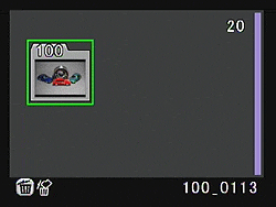 Turning the e-dial in Playback mode controls the index display and image enlargement options. The index display is accessed by rolling the rear e-dial one click to the left, and can show 4, 9, 16, 36, or 81 thumbnail images at a time on-screen (the default is 9). To change the number of thumbnails shown on screen, you press the info button, and then use the left or right arrow keys to make the change, before pressing the OK button. Alternatively, you can press the info button a second time to switch to the calendar view. (A third press will return to the thumbnail index view.) Most photographers will simply set and forget the thumbnail or calendar view, but if you want to change the number of thumbnails frequently, the number of button-presses required can get a little bit tedious. Rolling the e-dial one click further left brings you to a folder view, allowing you to quickly switch between folders of images.