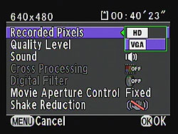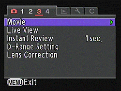 Pentax K-r Record Mode Menu Movie Options | ||