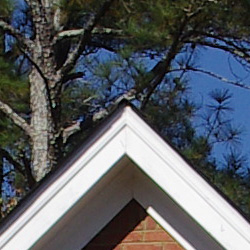 Sharpness. The Pentax K-x produced sharp images with good detail. Some edge enhancement artifacts in the form of "halos" are visible on high-contrast subjects such as the crop above left, but overall results are still pretty good. Edge enhancement creates the illusion of sharpness by enhancing colors and tones right at the edge of a rapid transition in color or tone.