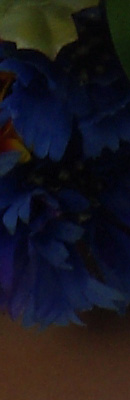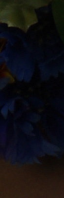 Indoors, under normal incandescent lighting, color balance was quite warm with the default Auto white balance setting, with a fairly strong orange cast; however, this is considerably better than Pentax SLRs used to produce which was a bright yellow/orange cast. Like the K-7, Pentax K-x features an "Automatic White Balance in Tungsten" setting in Custom menu 9. Options are "Subtle" and "Strong" correction, with the default being Subtle. The Strong setting resulted in a reduced orange cast compared to Subtle, with a slightly magenta tint. Results with the Incandescent setting were a bit on the cool side, with a slightly bluish cast. The Manual setting was the most neutral and accurate. Note that there is also a Color Temperature Enhancement (CTE) white balance mode, which strongly intensified the orange/yellow cast in our indoor test shot. The Pentax K-x required an average amount of positive exposure compensation for our indoor scene, at +0.3 EV. Overall color with the Manual white balance setting looks quite good, though the blue flowers appear slightly purple. (Many digital cameras reproduce these flowers with a dark, purplish tint, so the Pentax K-x actually performs a little better than average here.) Our test lighting for this shot is a mixture of 60 and 100 watt household incandescent bulbs, a pretty yellow light source (2,600 Kelvin), but a very common one in typical home settings here in the U.S.