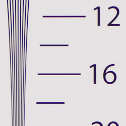Our laboratory resolution chart revealed sharp, distinct line patterns down to about 1,700 lines per picture height in the horizontal direction, and about 1,600 in the vertical direction. Extinction didn't occur until around 2,400 to 2,600 lines. We weren't able to do much better with Adobe Camera RAW processed RAW files, though results were crisper. There were quite a few moire interference patterns near or above the resolution limit in both the camera JPEG and ACR converted RAW file, indicating a fairly weak anti-alias (AA) filter (see other areas of the resolution target). Use these numbers to compare with other cameras of similar resolution, or use them to see just what higher resolution can mean in terms of potential detail.