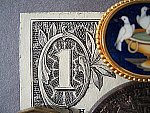 - Closeups: A very small macro area, with great detail. Flash has trouble up close though. The LS753 Zoom performed very well in the macro category, capturing a minimum area of only 1.65 x 1.24 inches (42 x 32 millimeters). Resolution was excellent, showing a lot of fine detail in the dollar bill. (The coins and brooch were soft due to the very short shooting distance.) As is often the case with digicam macro shots, there's a lot of softness in the corners, but no more than I'm accustomed to seeing in other cameras I test. The camera's flash almost throttled down for the macro area, but is too far to the upper right for an even exposure. - Plan on using an external light source for your closest macro shots.