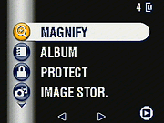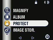 - Protect: Write-protects the displayed image, preventing it from being accidentally erased or manipulated (except via memory reformatting). Alternately, removes protection from previously-protected images.
