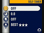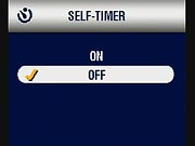- Self Timer: Enables or disables the camera's self-timer, which creates a 10-second delay between pressing the shutter button and the photo being taken. (secondary screen)