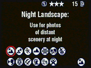 Mode indicator, and accesses a range of scene modes selected using the Left