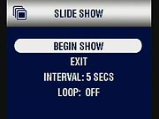 - Slide Show: Enables a slide show of captured images, with user-adjustable intervals between images, and the ability to loop the slideshow when completed. (secondary screen)