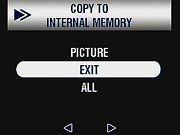 - Copy: Copies files from the internal memory to the SD card, or the reverse. (secondary screen)