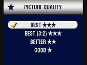 - Picture Quality: (Only in still-image modes.) Sets the image resolution to Best (2,560 x 1,920 pixels), Best (3:2) (2,560 x 1,706 pixels), Better (2,048 x 1,536 pixels), or Good (1,492 x 1,112 pixels). (secondary screen)
