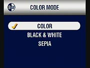 - Color Mode: (Still capture modes only.) Options are Color, Black and White, and Sepia. (secondary screen)