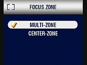 - Focus Zone: (Not in Scene or Movie modes.) Switches the AF area to Multi-Zone (default) or Center-Zone. (secondary screen)