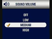 - Sound Volume: Sets the volume of camera sounds. Options are Off, Low (the default), Medium, and High. (secondary screen)