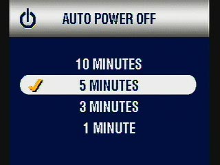 - Auto Power Off: Sets the camera to turn itself off after 1, 3, 5 or 10 (the default) minutes of inactivity. (secondary screen)