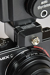 And the Panasonic LX3's small built-in flash pops up 1/2 inch from the body instead of being embedded into the body next to the lens, minimizing red-eye. But even better, the intelligent hot shoe with several contacts lets you use an external flash.
