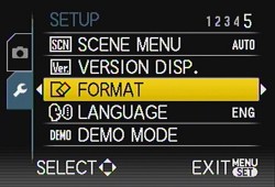 Which is a good thing because it's not a very good one. Count it as my chief complaint with this camera (and Panasonic cameras in general). I can't tell you how many times I hit the Set button to select an option only to be thrown out of the menu system because I should have hit the Right button. There's no reason the Set button couldn't function just like the Right button (there's no need to be exclusive), but it doesn't. And when you have to drill down to an option (as Formatting the card requires), you won't be happy to have to do it again.