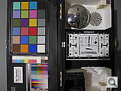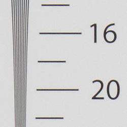 Our laboratory resolution chart revealed sharp, distinct line patterns down to about 1,600 lines per picture height in both directions from in-camera JPEGs. Extinction of the pattern occurred between 2,400 and 2,600 lines. We were able to extract a bit more resolution (1,700 to 1,800 lines) with fewer sharpening artifacts by converting a RAW file with Adobe Camera RAW. Use these numbers to compare with other cameras of similar resolution, or use them to see just what higher resolution can mean in terms of potential detail.