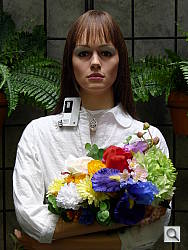 Outdoors, the Panasonic Lumix DMC-LX5 produced some hot highlights in the harsh lighting of our "Outdoor" shots. In the Portrait shot above left, detail is fairly strong in the shadows despite some visible noise, though some highlights are lost in the white shirt and flowers. An average amount of exposure compensation (+0.7 EV) was required to keep the model's face bright. The Lumix LX5 struggled a bit with color though, producing bright skin tones that were slightly cool, while darker tones had a yellow/green tint. In the Outdoor House shot on the right, the default exposure is pretty good, but again some highlights are clipped in the white trim. There are some pretty deep shadows as well. Color is pretty good though, just slightly on the cool side.
