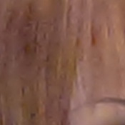 Detail. The crop above right shows moderate noise suppression, as the darker areas of hair and regions of low contrast show less distinct detail. However, individual strands remain fairly well defined in higher contrast areas. Noise-suppression systems in digital cameras tend to flatten-out detail in areas of subtle contrast. The effects can often be seen in shots of human hair, where the individual strands are lost and an almost "watercolor" look appears.