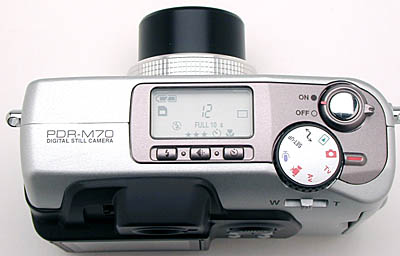 The PDR-M70 offers both an optical viewfinder and an LCD monitor for composing images. The real-image optical viewfinder zooms along with the lens and features small, black crosshairs in the center of the field of view, for lining up shots. It also features a dioptric adjustment dial, to accommodate the needs of eyeglass wearers. On the outside edge of the viewfinder, a small, red and green LED clues you in to the camera's status (i.e., if the focus is set, flash is ready, etc.).