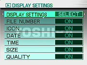 as the LCD monitor, when enabled via the Display button. All of the same menu