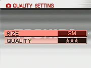 The PDR-M700's available resolutions are 2,048 x 1,536; 1,600 x 1,200; 1,280 x 960; 1,024 x 768; and 640 x 480. Three JPEG compression levels are available Fine (three stars), Normal (two stars), and Economy (one star). A Playback menu option lets you save images at lower resolutions, either at 320 x 240 or 160 x 120 pixels.