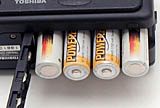 We've gotten so many emails about power issues for digicams, that we're now inserting this standard notice in the reviews of all AA-powered cameras on our site: Don't even *think* about using alkaline AA batteries in a digicam! Despite their being packed in the box with many cameras, they simply don't have the juice to handle typical digicam demands. (Even the "high power" ones the battery manufacturers say are designed for devices like digital cameras.) Spend the $35-40 or so it takes to get a set (or two) of high-capacity NiMH rechargeable batteries and a good charger! The few dollars up front will save you literally hundreds of dollars in the long run, not to mention the hassle of wimpy batteries running out in the middle of the action. We suggest you buy two sets of batteries, so one can always be in the charger, ready to go, and so have two sets available for longer excursions. Good brands of batteries include Maha (our favorite), GP, Kodak, and Nexcell. Also, buy the highest capacity AAs the manufacturer makes, the few extra dollars for the extra capacity is usually well worth it. Getting a good charger is critical though, almost more so than buying good batteries. We recommend the Maha C-204F (see the photo at right), the charger we use the most in our own studio. - Read our review of it for all the details. Or, just click here to buy one, you won't regret it. (Be sure to buy an extra set of batteries to accompany it though, you'll want them with the M71.)