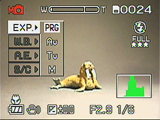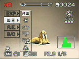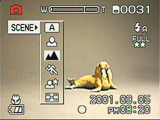 The 1.5-inch, wide-view, low-temperature polysilicon TFT LCD monitor has approximately 117,600 pixels. The LCD displays an abundance of camera information, including exposure mode, battery power, exposure settings (in Manual modes only), the number of available shots, flash mode, file size and quality, the zoom setting, a histogram (also in Manual modes only), and any exposure adjustment settings, such as Exposure Compensation or White Balance. The Display button below the LCD monitor controls the information and image display, cycling through the following options: Image with information display, image only, and no display. In addition to the LCD-based menu system, the LCD also displays direct menu options along the left side of the screen. These menu options are accessed by pressing the "Enter" button in the center of the Four Way Arrow pad. (We have to admit that we found this a little tricky at first, although we soon found it a faster way to change exposure settings than going through the main menu system.)