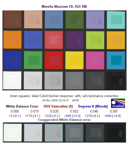 Overall, the Konica Minolta Maxxum 7D has very good to excellent hue accuracy