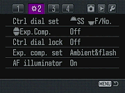 With all these switches and dials, it's easy to get lost. When these controls are software-driven as on other cameras, you can simply switch to a different mode and most of your settings will change to normal via software control, especially if you run to the Green Zone or Full Auto mode. But on the Maxxum 7D all those switches can't be so easily overridden. Or can they? This is where the camera starts to mess with your mind. Many of these settings can indeed be overridden. If you set the Exposure Mode dial to preprogrammed mode 1, 2, or 3, you can assign all the settings you like to that switch setting and regardless what the Exposure Compensation and Bracketing dials are set to, your previously-saved settings are recovered and active. This could be extremely valuable to that wedding photographer I mentioned earlier, because this can include both separate Exposure bracketing and Flash exposure bracketing modes.