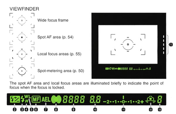 a five-step LED bargraph inside the viewfinder