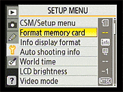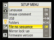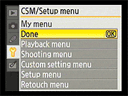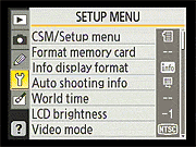 Nikon D40 Setup Menu Options | ||||