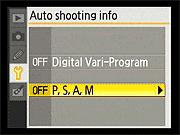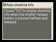 You can also choose whether or not to have the camera display aperture and shutter settings when the shutter button is half-pressed. |