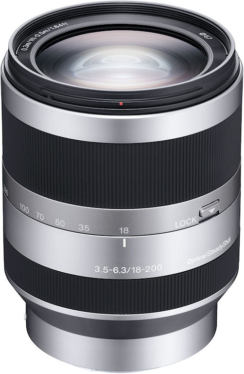 The initial three lenses for the Sony E-mount system all feature all-metal construction with aluminum lens barrels, and steel mounts. Both zoom lenses offer optical image stabilization, with the E 16mm f/2.8 lens (model SEL16F28) being the sole model to forgo image stabilization. For that small sacrifice, it's also the smallest and lightest E-mount lens thus far, as well as offering the closest focusing of the group. The stabilized E 18-55mm F3.5-5.6 OSS lens (model SEL1855) has the same barrel diameter, but is just a little under triple the length and weight. Usefully, the 18-55mm lens accepts the same 49mm filter threads as the prime -- doubly helpful because it means the pair can also share lens caps, saving fumbling in your pocket for the second cap every time you switch lenses. Finally, the E 18-200mm F3.5-6.3 OSS lens (SEL18200) offers by far the most telephoto reach of the trio. Featuring the more powerful SteadyShot Active stabilization system, the E 18-200mm also provides the highest maximum magnification of the trio, at approximately 0.35x. It's also the largest of the group, with a barrel diameter that tapers outwards a little over 20% wider than its siblings, and being two thirds longer than the 18-55mm lens. It also weighs over two and a half times more than the 18-55mm lens, and takes a significantly larger 67mm filter thread.