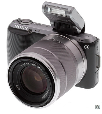 The Sony NEX-C3's body is a duo-tone design, something borrowed from the low-end Alpha SLR line, but it works much better here.