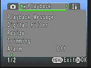 The 33WR's Panorama Assist mode lets you capture panoramic images, oriented in any direction. A translucent reproduction of the edge of the previous image remains on the LCD display to help you line up subsequent shots, and the included ACDSee software "stitches" images together into one panoramic frame. There's also an Interval shooting mode, which captures a series of images (as many as 99 in the series), at preset intervals from 10 seconds to 99 minutes. The final effect is similar to time-lapse photography. Image contrast, saturation, and sharpness settings provide further creative options, and a Color mode (full color, black and white, and sepia tones) is available in Movie mode only. The 33WR also offers Pentax's versatile Color Filter option, though the effect is applied post-capture through the Playback menu rather than before. The Color Filter offers eight color filter settings (black and white, sepia, red, pink, violet, blue, green, and yellow), a Soft filter, and a Brightness filter adjustment.