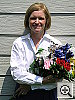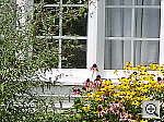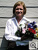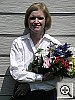| Outdoor Portrait: A very nice job overall, despite high contrast, with good color and great resolution, but the white balance system could use a little help. The extreme tonal range of this image makes it a tough shot for many digicams, which is precisely why I set it up this way, and why I shoot it with no fill flash or reflector to open the shadows. The object is to hold both highlight and shadow detail without producing a "flat" picture with muddy colors, and the Optio 450 had a little trouble with the high contrast lighting, although its color is very good. The shot at right was taken with a +0.7 EV exposure compensation adjustment and the contrast set to low. Midtones are still a little dark, and even at this low contrast setting, the highlights are quite bright. I chose the Daylight white balance as the most accurate overall, despite a quite noticeable magenta cast. The Auto setting resulted in a rather greenish look, while the Manual setting was quite warm-toned. Skin tones look pretty good, although the blue flowers in the bouquet are a little darker than in real life. This is a very difficult blue for many digicams to get right, but the Optio 450 does pretty well with it. For reference, the flowers are actually a light navy blue, with just slight hints of purple in them. The camera handled the strong red and green tones quite well, and color looks very good throughout the rest of the frame. Resolution is very high, with sharp details in Marti's features as well as in the flower bouquet and house siding. Detail is also good in the shadow areas, with low noise. To view the entire exposure series in the Daylight white balance from zero to +1.0 EV with the low contrast adjustment, see files O45OUTLCDP0.HTM through O45OUTLCDP3.HTM on the thumbnail index page. Contrast Series: