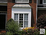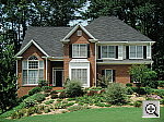 | Far-Field Test Excellent resolution and detail, though slightly high contrast. This image is shot at infinity to test far-field lens performance. NOTE that this image cannot be directly compared to the other "house" shot, which is a poster, shot in the studio. The rendering of detail in the poster will be very different than in this shot, and color values (and even the presence or absence of leaves on the trees!) will vary in this subject as the seasons progress. In general though, you can evaluate detail in the bricks, shingles and window detail, and in the tree branches against the sky. Compression artifacts are most likely to show in the trim along the edge of the roof, in the bricks, or in the relatively "flat" areas in the windows. This is my ultimate "resolution shot," given the infinite range of detail in a natural scene like this, and the Optio 450 performed very well. (Apologies for the slight tilt in the images!) Detail is excellent in the tree limbs over the roof and in the fine foliage in front of the house, with great definition in the leaf patterns. Details are also sharp throughout the frame, although the top corners of the frame are just slightly soft. (Still, the degree of softening in the corners is much less than I'm accustomed to seeing from digicam lenses on this shot.) The shot is slightly underexposed with the camera's default settings, and the contrast is a little high to boot. The result is that the shadow areas are rather dark, although there's almost no noise present. Even with the underexposure though, I was surprised to see that the camera held onto the detail in the strong highlight on the front of the bay window. Color is about right, although the underexposure makes it a bit more saturated than it might be otherwise. The table below shows a standard resolution and quality series, followed by ISO, sharpness, saturation, and contrast series. Resolution Series: