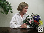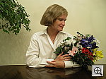 | Closer Portrait: Excellent resolution and detail, although again slightly high contrast. Overall exposure and color balance are similar to the wider shot above, and the Optio 450's 5x zoom lens prevents any distortion of Marti's features in a closeup like this. Detail is stronger and more well-defined in this shot, especially in Marti's face and hair. (Probably more than Marti would like to see full-screen.) The shot at right was taken with a +0.3 EV exposure compensation adjustment. Contrast was again high at the default setting, so I shot with the low contrast adjustment. Shadow detail is excellent, with low noise. To view the entire exposure series from zero to +0.7 EV, see files O45FACLCAP0.HTM through O45FACLCAP2.HTM on the thumbnail index page. | ||||||||||||||||||||||||||||||||||||||||||||