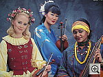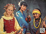 Slight color casts with each white balance setting, and a slight underexposure, but good resolution. This shot is often a tough test for digicams, as the abundance of blue in the composition frequently tricks white balance systems into producing a warm color balance. Despite the reddish cast, the Optio 450's Daylight white balance setting produced the best overall color here. The Auto setting fell prey to the problem described above, producing strong warm cast, while the Manual setting was quite cool and blue. The red cast of the Daylight setting creates purple tints in the blue background, as well as in the deep shadows of the blue robe. Skin tones are quite red as well. Resolution is very high, with great detail in the embroidery of the blue robe. The original data file for this poster was only 20MB however, so the Optio 450 can definitely show more detail than the poster has in it. | ||||||||||||||||||||||||||||||||||||||||||||
