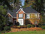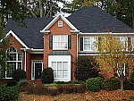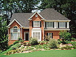 | Far-Field Test Excellent resolution and detail, with a good dynamic range. This image is shot at infinity to test far-field lens performance. NOTE that this image cannot be directly compared to the other "house" shot, which is a poster, shot in the studio. The rendering of detail in the poster will be very different than in this shot, and color values (and even the presence or absence of leaves on the trees!) will vary in this subject as the seasons progress. In general though, you can evaluate detail in the bricks, shingles and window detail, and in the tree branches against the sky. Compression artifacts are most likely to show in the trim along the edge of the roof, in the bricks, or in the relatively "flat" areas in the windows. This is my ultimate "resolution shot," given the infinite range of detail in a natural scene like this, and the Stylus Verve did a pretty good job with it. The tree limbs over the roof and fine foliage in front of the house show good detail, although the image is slightly soft overall, perhaps from anti-noise processing. (As witness the slightly rough edges along the white trim in the central gable of the house, where the noise-suppression processing gives way in the face of the abrupt brightness change.) In-camera sharpening does a pretty good job here, although I'd like to see the image slightly more crisp overall. To its credit there seems to be relatively little of the softness I've come to expect in the corners of digicam images. The very harsh lighting of this scene causes the